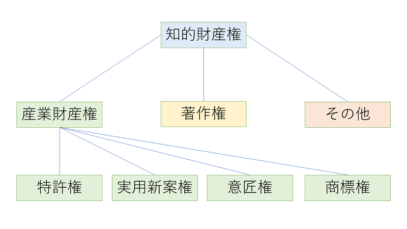 産業財産権はさらに特許権・実用新案権・意匠権・商標権の4つに分けられます。