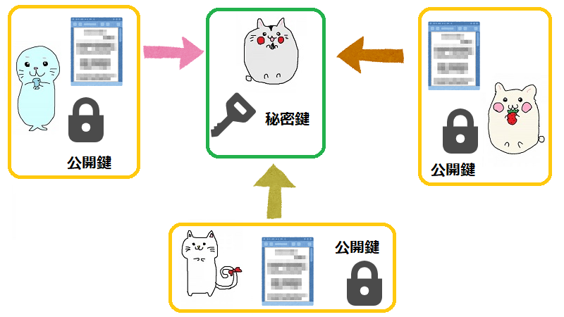 - 複数人でやり取りを行う際、必要な鍵の本数が少ない。
